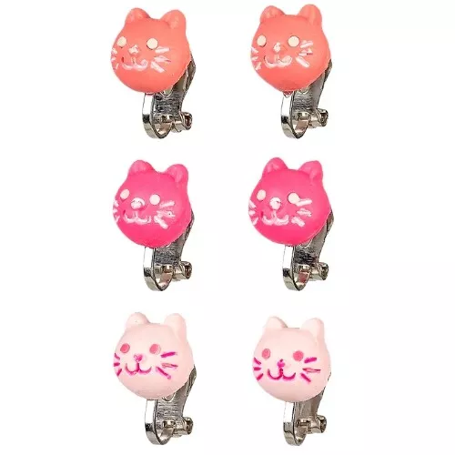 De set bestaat uit drie paar clipoorbellen die versierd zijn met poezenkopjes.