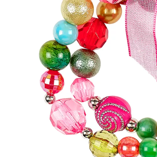 Een kinderarmbandje ‘Leanna’ van het Nederlandse merk Souza for Kids. Deze vrolijke armband bestaat uit twee kralenarmbandjes die aan elkaar bevestigd zijn met een roze strik.