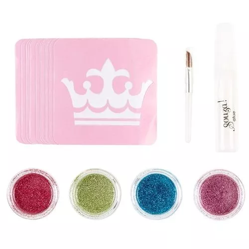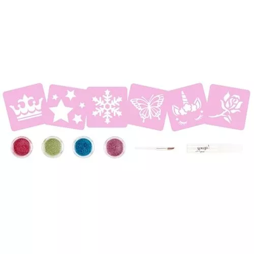 Glitter tattoos van het Nederlandse merk Souza for Kids. Deze set bevat 12 tattoo sjablonen van o.a. rozen, sterren, sneeuwvlokken, vlinders en meer.