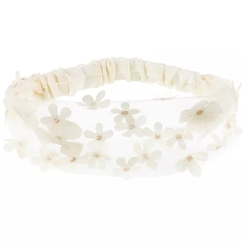 Deze modieuze haarband ‘Else – Gebroken Wit’ van het Nederlandse merk Souza for Kids heeft aan de voorkant doorzichtig tule met prachtige bloemen en goud glitter. Door de rekbaarheid van de haarband zit hij comfortabel en stevig om het hoofd.