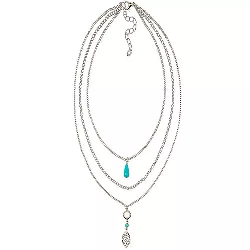 Deze prinsessenketting Marte van het Nederlandse merk Souza for Kids bestaat uit 3 verschillende ‘zilveren’ kettingen van verschillende lengten, met een turkoise-zilveren hangertje met een ‘ diamant’.
