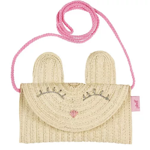 Een hip, gevlochten handtasje ‘Viky’ van het Nederlandse merk Souza for Kids met rechtopstaande konijnenoortjes en een vriendelijke snoet.