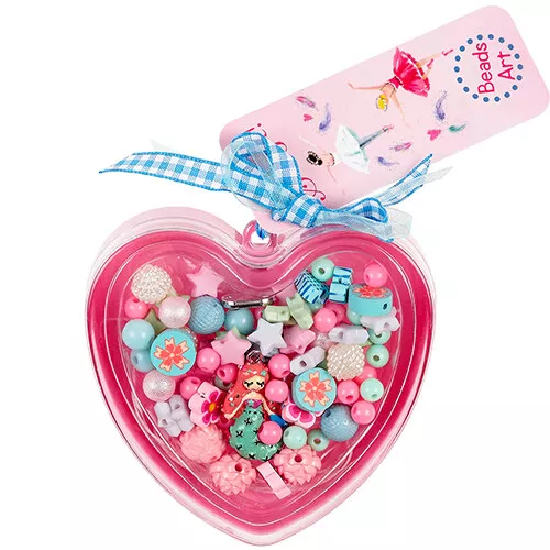Een hartvormig doosje met rijgkralen ‘Darlene’ van het Nederlandse merk Souza for Kids, voor het maken van mooie kindersieraden.
