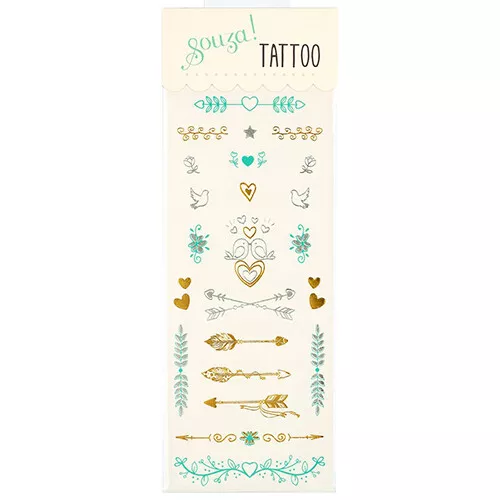 Steel de show met deze ‘Fashion’ tattoos van het Nederlandse merk Souza for Kids voor armen, benen en hals. De kindertattoos hebben metallic details en maken van iedere outfit een feestje.