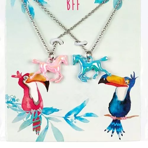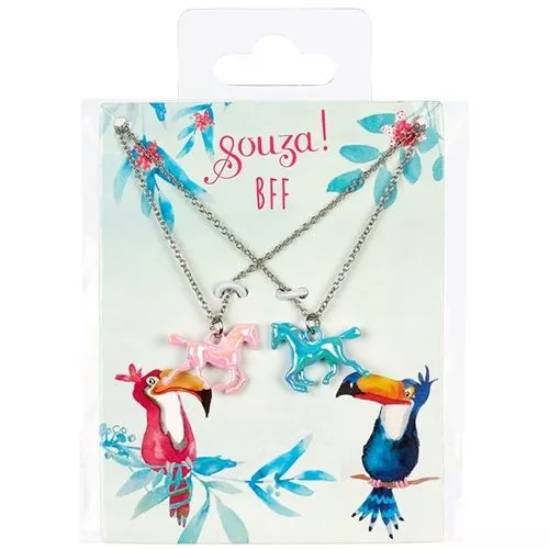 Twee vriendschapskettingen van het Nederlandse merk Souza for Kids voor echte hartsvriendinnen die ook van paarden houden. Met twee glanzende paardjes in het roze en blauw.