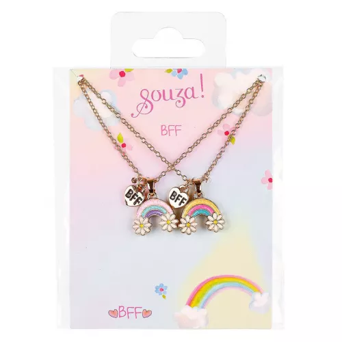 Twee vriendschapskettingen van het Nederlandse merk Souza for Kids voor echte hartsvriendinnen. De kettingen hebben een regenboog bedel en een BFF bedel.